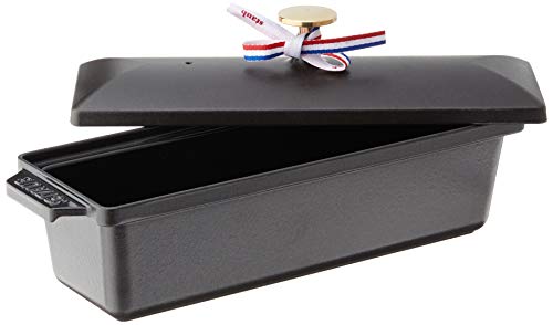 Details: Staub cookware is beloved by professional and home chefs for its exquisite craftsmanship, exceptional performance, and timeless beauty. Proudly crafted in France, the Staub Rectangular Terrine is the perfect pan for making authentic French terrines and pates. The pan’s durable cast iron construction boasts impressive heat retention and distribution for delicious cooking results every time. Enameled cast iron offers quick release, so that your terrines easily pop out of the pan and onto a serving dish. If need be, you can store the pan in the fridge or freezer – cast iron wonderfully withstands both hot and cold temperatures.